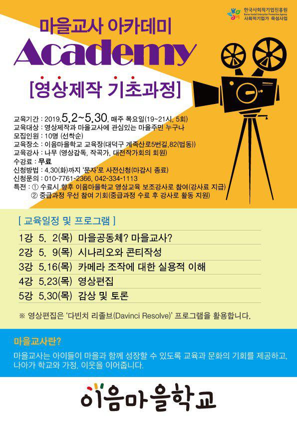 | 2019년 이음마을학교에서 '마을교사아카데미 - 영상제작기초과정'이 열렸습니다. (0) | 2020.07.22 |