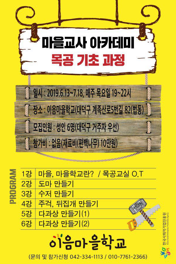 | 2019년 이음마을학교에서 '마을교사아카데미 - 목공기초과정'이 열렸습니다. (0) | 2020.07.22 |