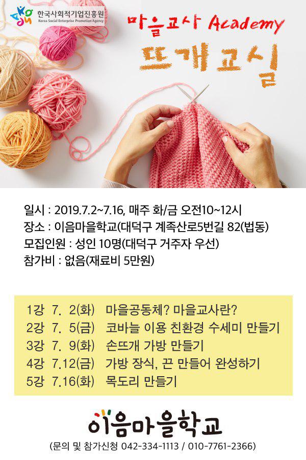 | 2019년 이음마을학교에서 '마을교사아카데미 - 뜨개교실'이 열렸습니다. (0) | 2020.07.22 |